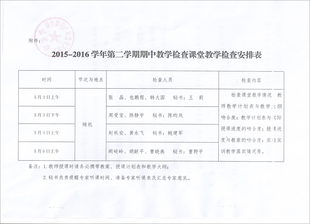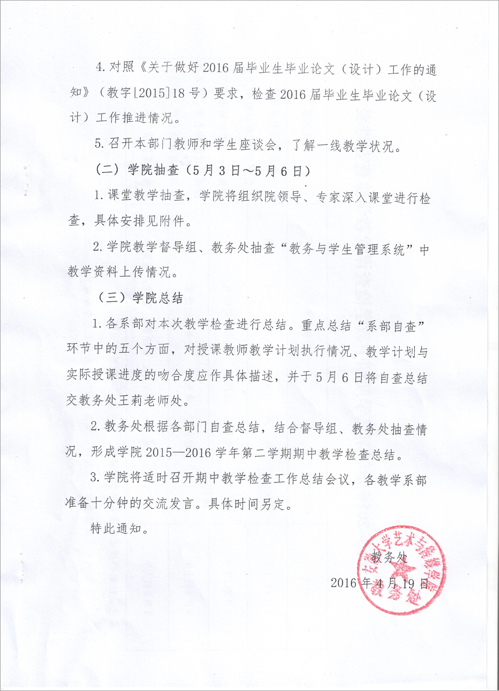 关于开展2015-2016学年第二学期期中教学检查工作的通知