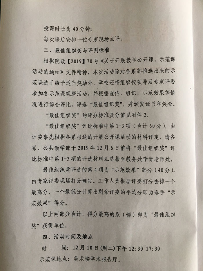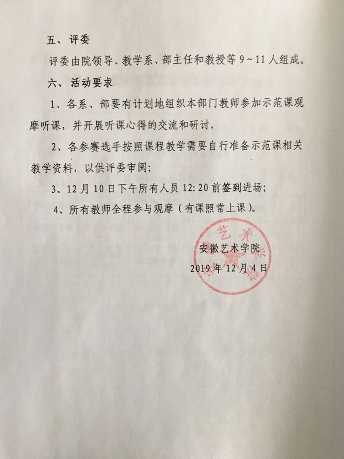安徽艺术学院首届教学示范课活动安排
