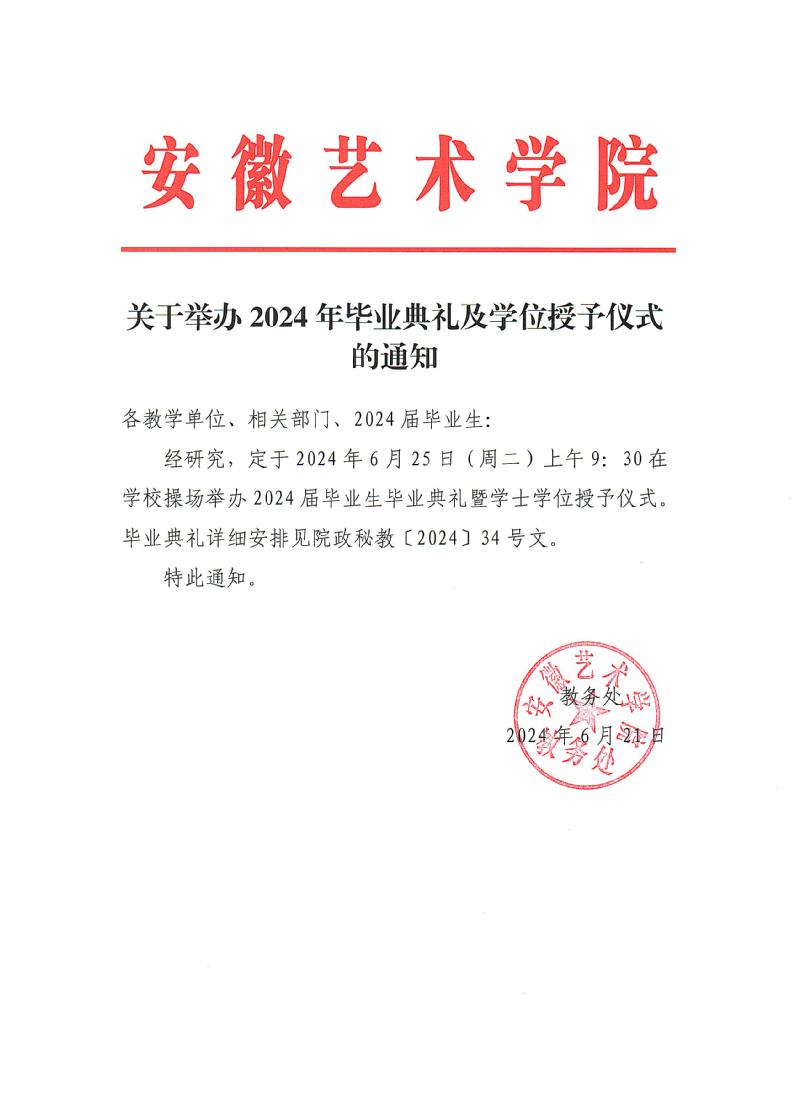 关于举办2024年毕业典礼及学位授予仪式的通知