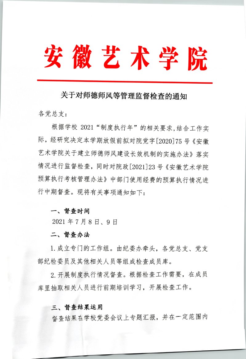 关于对师德师风等管理监督检查的通知