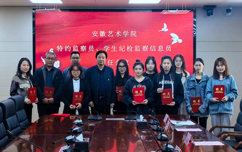 会上,纪委副书记钱农宣读学校纪委(监察专员办公室)《关于聘任安徽艺术学院特约监察员、学生纪检监察信息员的通知》。宣扬为特约监察员、学生纪检监察信息员颁发聘任证书。