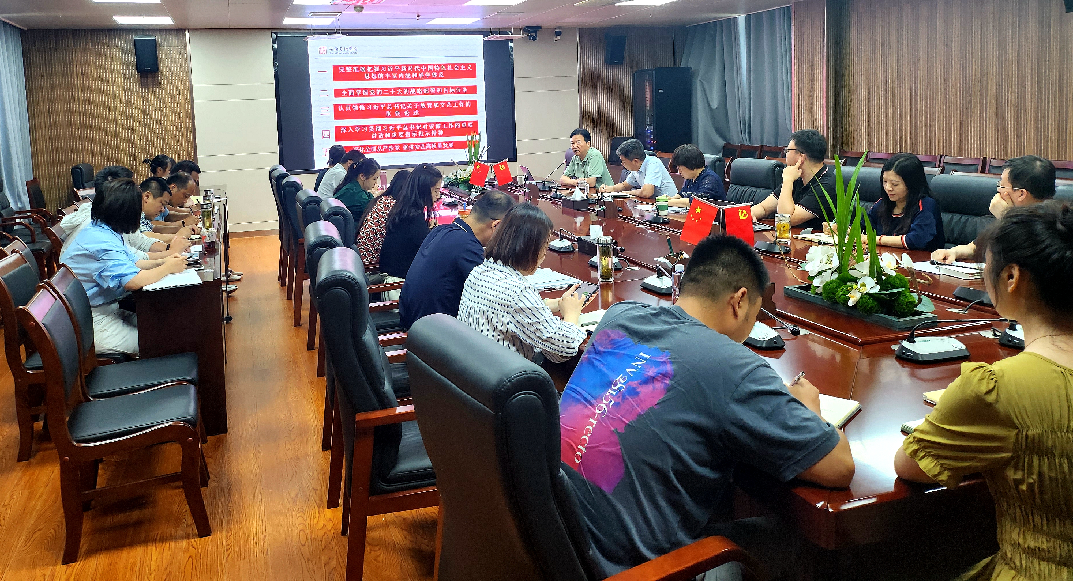 为深入开展学习贯彻习近平新时代中国特色社会主义思想主题教育,7月12日上午,党委委员、纪委书记、监察专员宣扬以《深化全面从严治党,推进安徽艺术学院高质量发展》为题,为机关党总支部委员会委员、机关各支部纪检委员和部分党支部党员讲授主题教育专题党课。