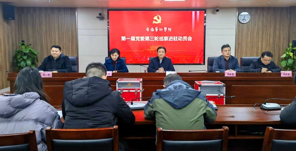 12月12日,校第一届党委第三轮巡察进驻动员会在综合楼717会议室召开。校党委委员、纪委书记、监察专员宣扬出席会议并作动员讲话。党委委员、教师工作部(人事处)部长(处长)、第三轮巡察工作组组长曹晓富通报巡察任务和工作安排。党委委员、组织部(党校)部长(副校长)王琍琍主持会议。