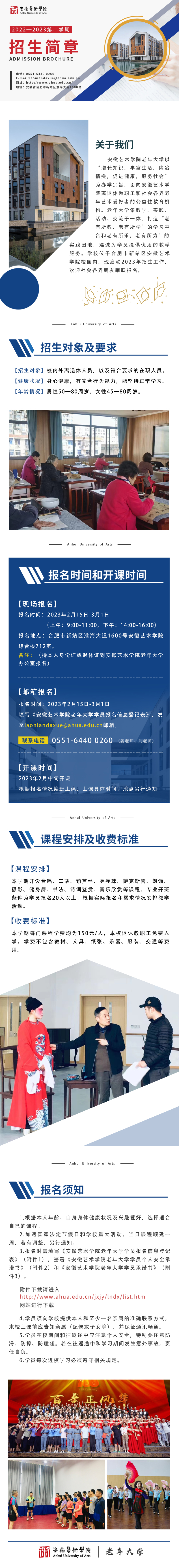 安徽艺术学院2022-2023第二学期老年大学招生简章