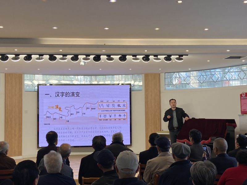 首场名家讲堂的主题是书法欣赏与实践漫谈,主讲人为安徽艺术学院美术学院副教授张典友。张教授从汉字的演变讲起,深入浅出的介绍了汉字的历史和书法的发展历程。精彩的授课内容受到了大家的热烈欢迎。