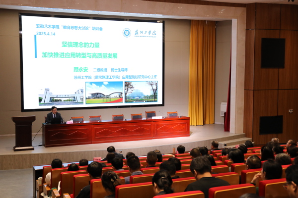 动员会后,苏州工学院应用型院校研究中心主任、二级教授、博士生导师顾永安作了题为《坚信理念的力量 加快推进应用转型与高质量发展》的专题辅导报告。顾永安围绕推进应用转型发展的历程与阶段特征、应用型大学的新方位新地位新定位、推进应用转型与高质量发展的战略设计、推进应用转型与高质量发展的核心理念、推进应用转型与高质量发展的策略路径等方面,从国家政策等宏观层面结合实际工作案例对新建本科高校如何推进应用转型与高质量发展作了全面而深入的阐释,既有深邃的理论思考,又有很强的现实指导性和针对性,拓宽了视野,提供了借鉴。顾永安作为专家学者对研究的专注、作为教师对教学的严谨态度以及结合我校实际进行深度思考的认真走心的工作作风,给教职工留下了深刻的印象。