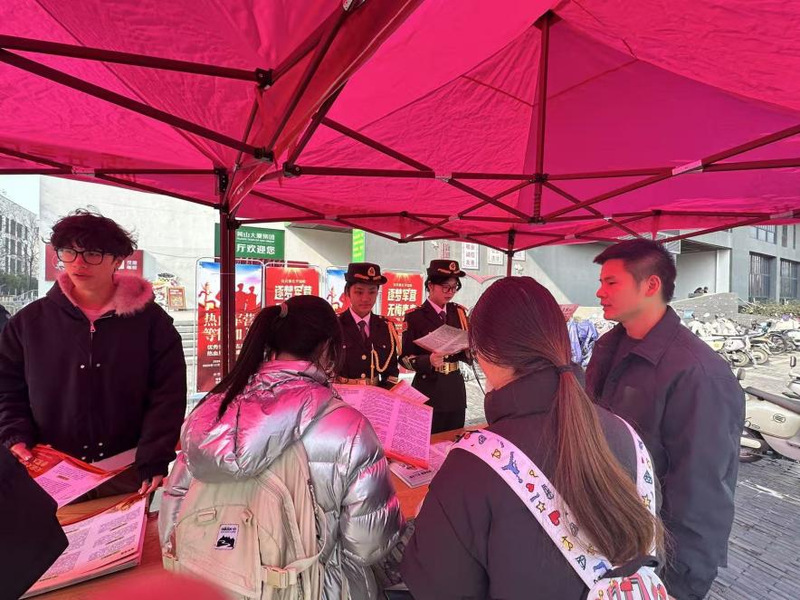 为深入贯彻落实国家和省市征兵工作要求,进一步激发全校学生的爱国热情与强军之志,鼓励广大青年学子积极投身国防事业,近日,我校联合瑶海区人民武装部,开展2026年征兵宣传系列活动。活动邀请瑶海区参谋楚金金、安徽工商学院院党委学生工作部部长兼人民武装部部长王东辉进校开展政策宣讲,同时组织退役大学生士兵、国旗护卫队学生深入一线宣传,多维度、全方位向学生传递参军报国的责任与荣光。