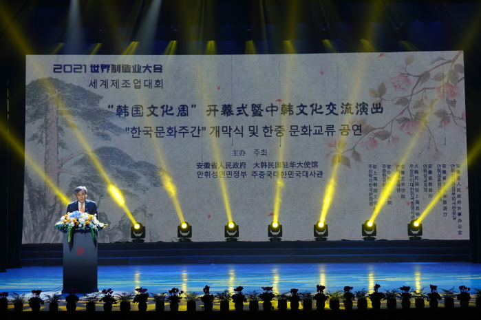 11月19日晚,由安徽省人民政府、韩国驻华大使馆主办,安徽省外办、省文旅厅、省教育厅、安徽艺术学院等承办的 “2021世界制造业大会韩国文化周开幕式暨文艺演出”在安徽艺术学院小剧场隆重举行。