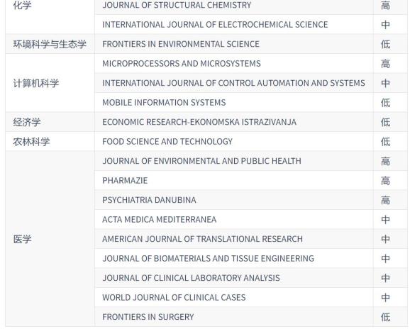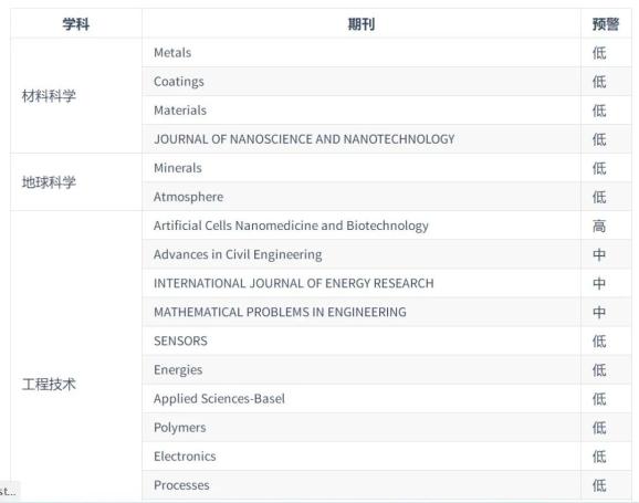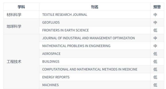 2024年中国科学院预警期刊名单: