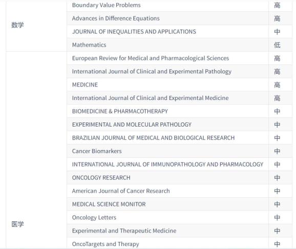 2020年《国际期刊预警名单(试行)》:
