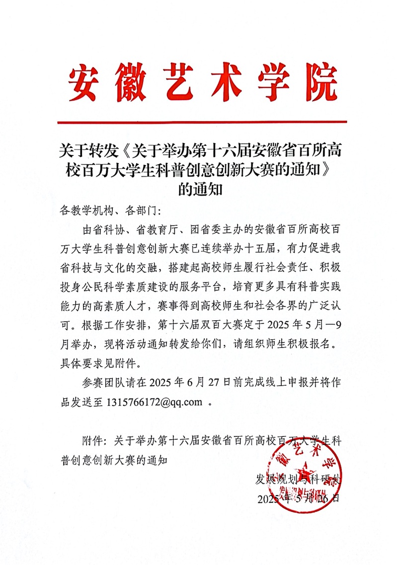关于举办第十六届安徽省百所高校百万大学生科普创意创新大赛的通知.pdf
