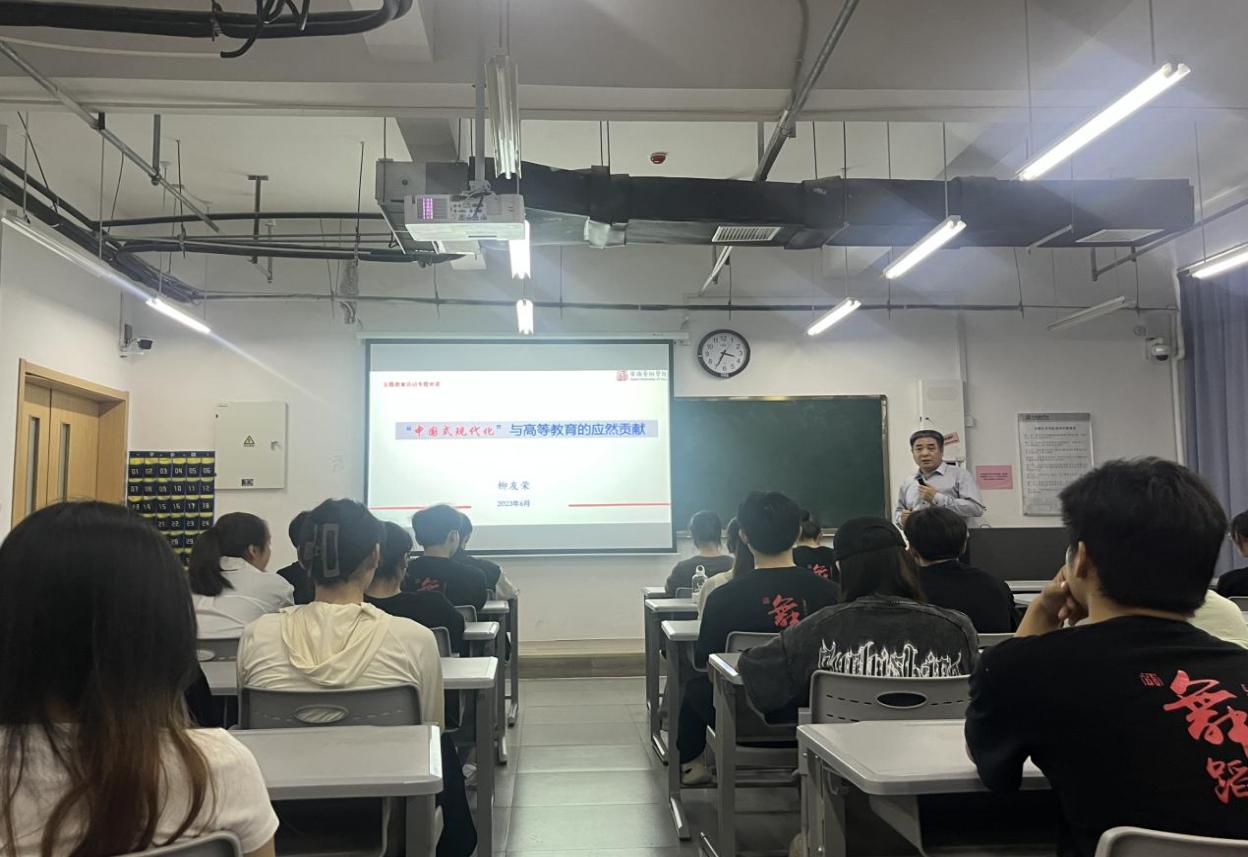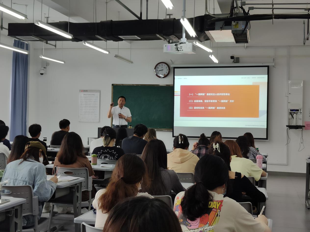 授课中,校领导旁征博引,通过生动的语言、详实的数据、鲜活的案例、相应的视频资料,以及适时穿插自身成长经历和阅历见闻,让同学们更加生动地感受到新时代十年取得的历史性成就和发生的历史性变革,达到了以深刻的思想吸引学生,用彻底的理论和生动的事实说服学生的教学效果。