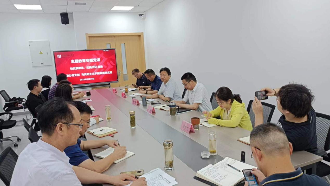 根据校党委主题教育工作要求,6月30日上午,马克思主义学院直属党支部在综合楼721会议室开展主题教育专题党课暨主题党日活动,邀请校党委委员、纪委书记、省监委驻安徽艺术学院监察专员宣扬讲党课。会议由直属党支部书记吴孔铎主持。