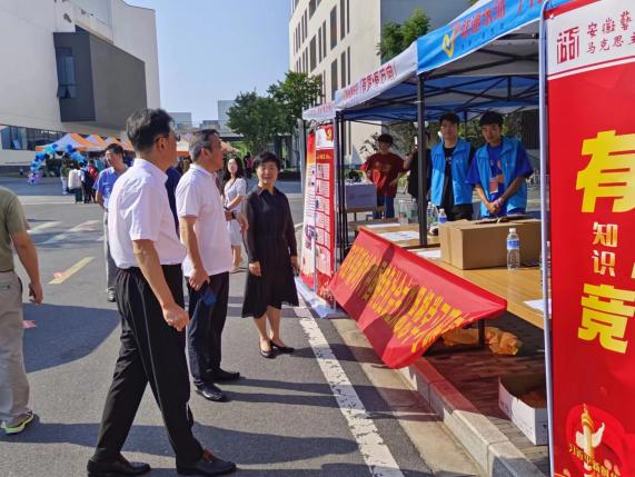 校党委书记韩军、行政负责人沈端良走进马院志愿服务现场,了解马院“党员先锋岗”情况,对马院在新生进入校门时就跟进思想政治教育的做法表示赞许。