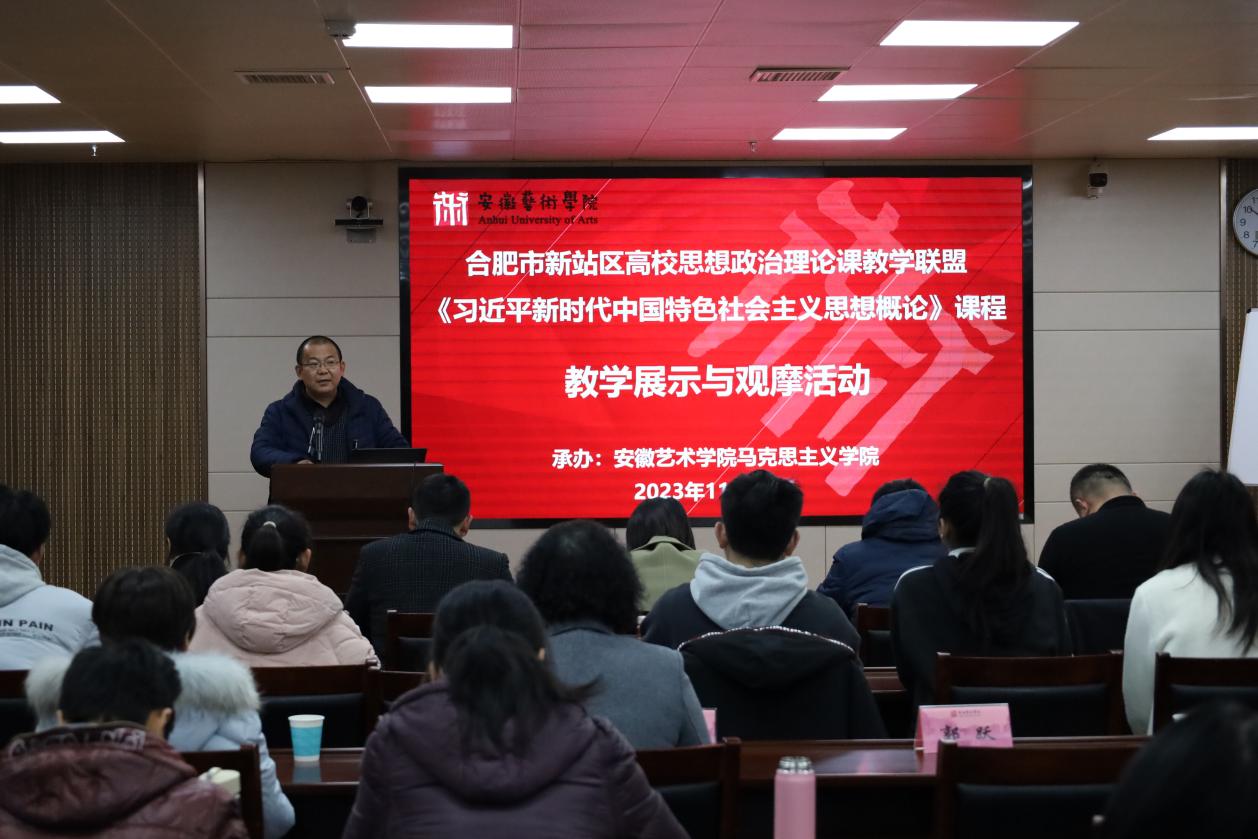 11月14日下午,合肥市新站区高校思想政治理论课教学联盟(以下称“教学联盟”)《习近平新时代中国特色社会主义思想概论》课程教师教学展示与观摩活动,在我校综合楼717会议室圆满落幕。校党委书记韩军出席活动并致辞。
