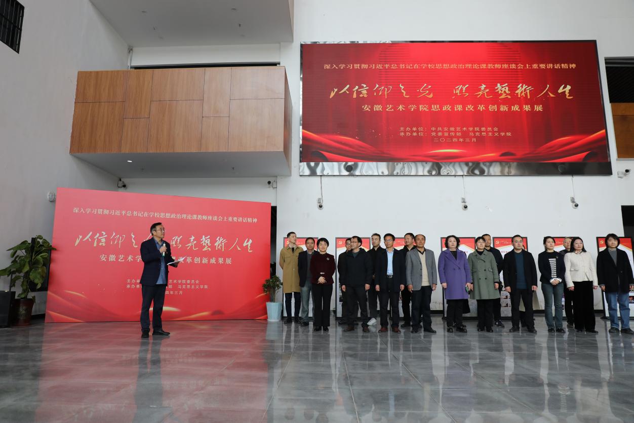 座谈会前,参会人员一行参观“以信仰之光照亮艺术人生”——安徽艺术学院思想政治理论课改革创新成果展。成果展共分“领导重视,保障到位”“课程建设,成效明显”“实践育人,成果丰硕”“教研科研,向上向好”“队伍建设,全面提升”“社会服务,有为有力”等六个部分,充分展现了五年来学校思政课建设的成效。