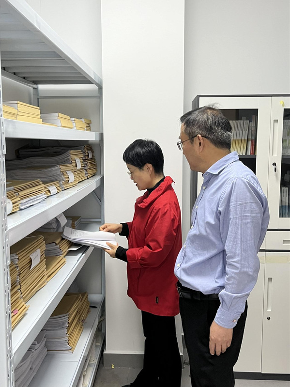 韩军书记一行首先来到马克思主义学院,现场查看了办公用房的使用情况,查看教学档案建设、资料室建设、试卷库建设等情况。