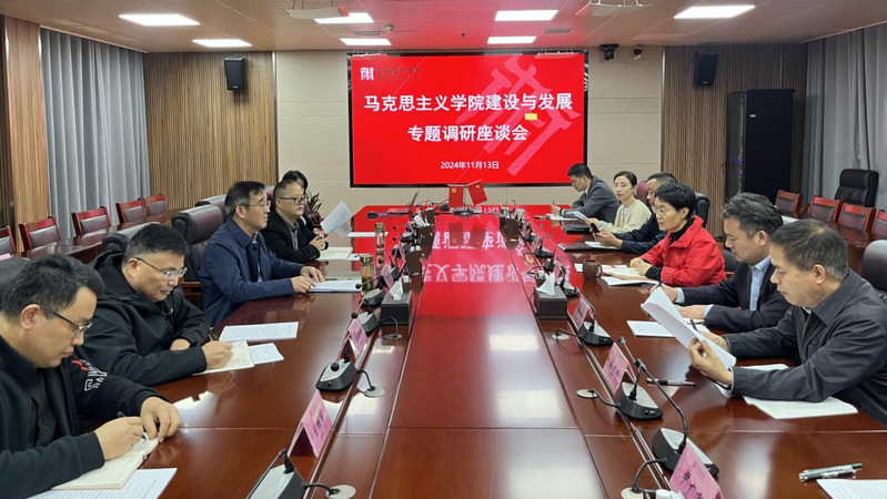 在综合楼716会议室,韩军主持召开专题调研座谈会。马克思主义学院院长吴孔铎就学院党建工作、教学工作、科研成果、工作亮点以及需要解决的问题等方面进行了全面汇报。马院教师代表分别进行发言,他们表示,校党委高度重视思政课和马院的建设发展,全校重视支持思政课的氛围进一步巩固,学风建设成效明显,学生对思政课的认可度正在不断提升。随后,各职能部门负责人分别进行发言,他们充分肯定了马院近年来取得的成绩,表示将继续帮助支持马院的建设和发展。