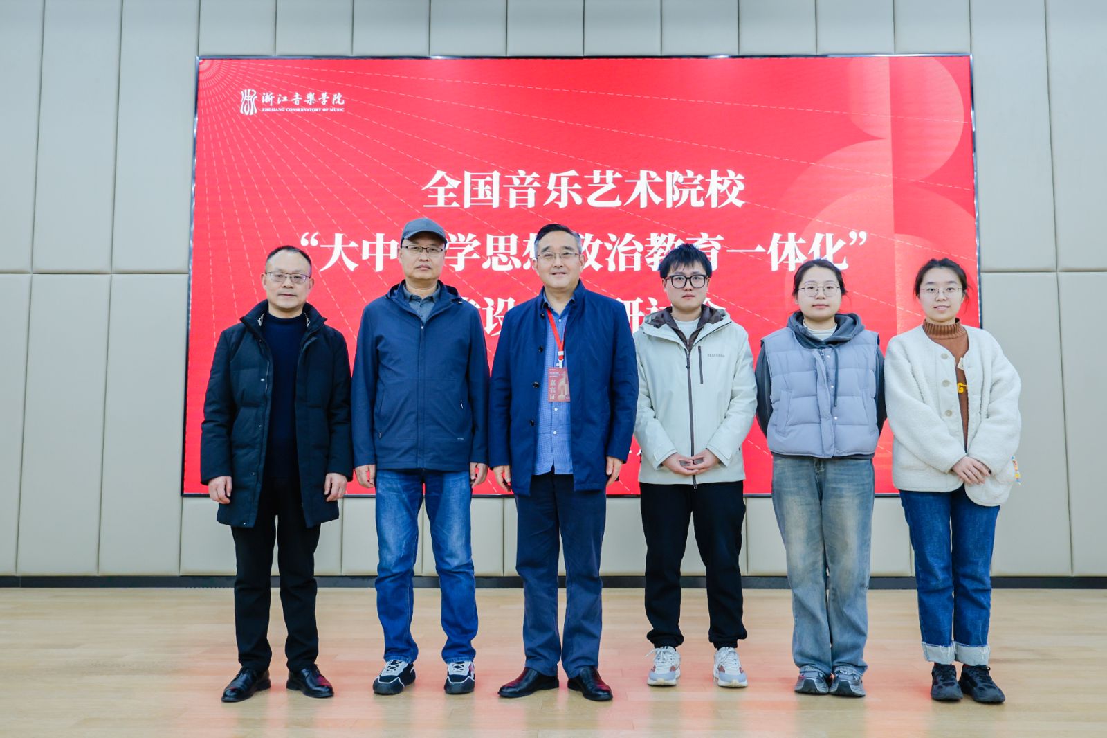 为深入贯彻落实党的二十届三中全会精神,扎实推进“大中小学思想政治教育一体化建设”,12月6日至8日,全国音乐艺术院校“大中小学思想政治教育一体化”建设专题研讨会在浙江音乐学院举行。全国艺术院校马克思主义学院负责人、教师代表,西湖区中小学教师代表齐聚浙音,分享各院校特色做法与实践经验,共同探索大中小学思想政治教育一体化建设的新理念、新路径与新方法。安徽艺术学院马克思主义学院院长吴孔铎和教师代表应邀参加会议。