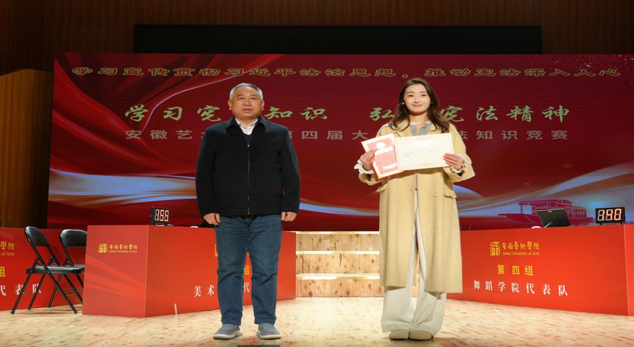 为深入学习宣传贯彻习近平法治思想,推动宪法深入人心,12月3日下午,第十届安徽省学生“学宪法 讲宪法”获奖表彰暨安徽艺术学院第四届大学生宪法知识竞赛活动在音乐南楼音乐厅顺利举行。校党委副书记陈文兵出席活动,各二级学院有关负责同志参加。