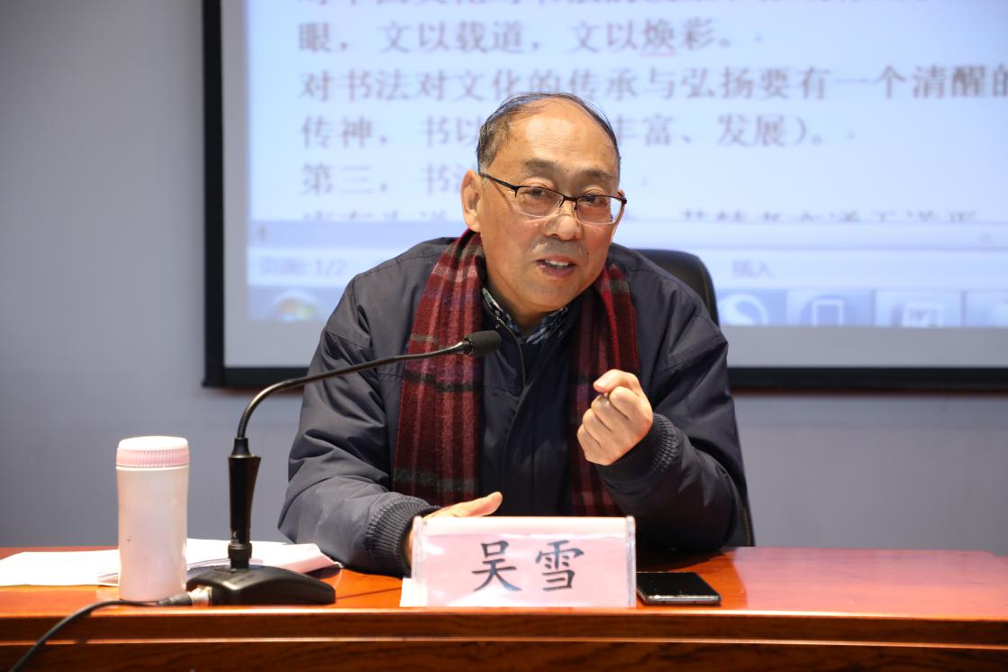 讲座开始,吴雪教授分别从“书法是什么?”、“书法为什么?”、“书法当下的形式”三点切入为同学们普及了书法的文化精神,使同学们对书法艺术的特性、内涵、形式及风格有一个更全面的认识。吴雪教授认为,书法是最具有中国文化底蕴和中国精神的独特艺术,是优秀文化的经典代表。学习书法艺术,有利于优秀的文化传承,有利于增强文化自信,更有利于中国文化的传承与发展。