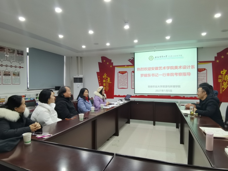 2021年1月5日,美术设计系党总支书记罗耀东、副书记张丽丽等一行赴“全国党建工作标杆院系”——安徽农业大学茶与食品科技学院学习交流,受到安徽农业大学茶与食品科技学院党委书记唐红萍、院长李大祥等领导的热情接待,并在唐红萍书记的引荐下参观“教育部第二批党建工作样板党支部”——安徽农业大学资源与环境学院第二学生党支部。
