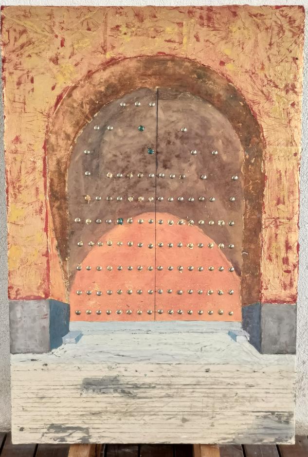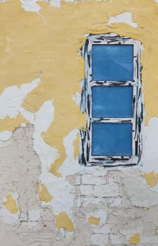 最近眼睛经常疲惫,视力下降,路上遇到朋友挥手打招呼,还要聚焦半天走近才看的清楚是谁,很苦恼,以前不是这样,心里也在感慨,眼睛确实是人重要的窗户,就想着做一堵墙,给他装上一扇窗户。自己也过了二十多年了,所以给墙和窗户做一些经历过岁月的痕迹,让墙体稍稍破旧一点,所以有了《窗》这个作品。