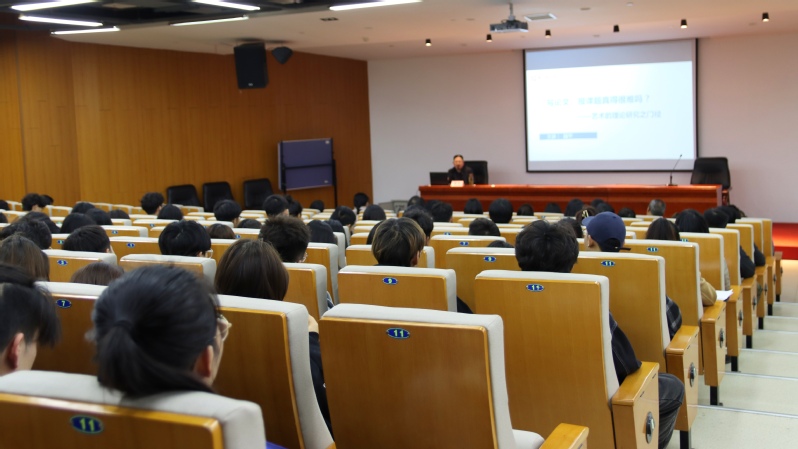 讲座围绕分析问题思路、研究现状梳理、研究目标与路径(思路)、研究内容、研究方法等几个方面展开,深入剖析什么是艺术的理论研究,自然过度到什么是学术论文及什么是科研课题。同时为同学们指明方向,列出所必须具备的能力,即学科知识、研究能力。同学们听完纷纷表示受益匪浅,有助于自身思想的转变和论文撰写能力的提高。