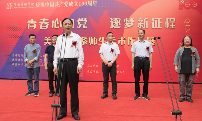 5月22日,“青春心向党 逐梦新征程”——安徽艺术学院庆祝中国共产党成立100周年师生美术作品展在合肥久留米友好美术馆开幕。作为学校庆祝中国共产党成立100周年系列活动之一,该展览由美术设计系党总支承办。校党委书记周明洁,党委副书记、院长樊嘉禄,行政负责人张晶,合肥市文联副主席唐永忠、久留米友好美术馆馆长吴蒙,校党委宣传部、科研处等部门负责人出席开幕式,社会各界人士及师生代表、美术爱好者等共计两百余人参加了开幕式。开幕式由校美术设计系党总支书记、主任罗耀东主持。