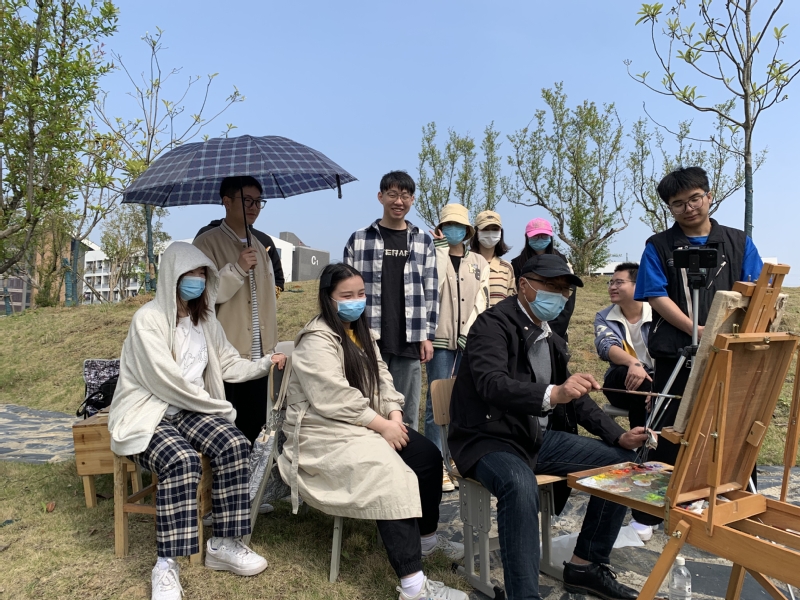 由于疫情,原计划定在皖南的写生课程被创造性的改为校园写生。美术设计系的师生充分利用校园的景色,有计划地开展写生课程,包括水彩、油画、速写、素描等多种形式。21级绘画专业的学生说到,“我第一次在校园内写生,虽然疫情严重没能出去,但这也给了我一次静下心观察校园的机会,我觉得很有意义。”