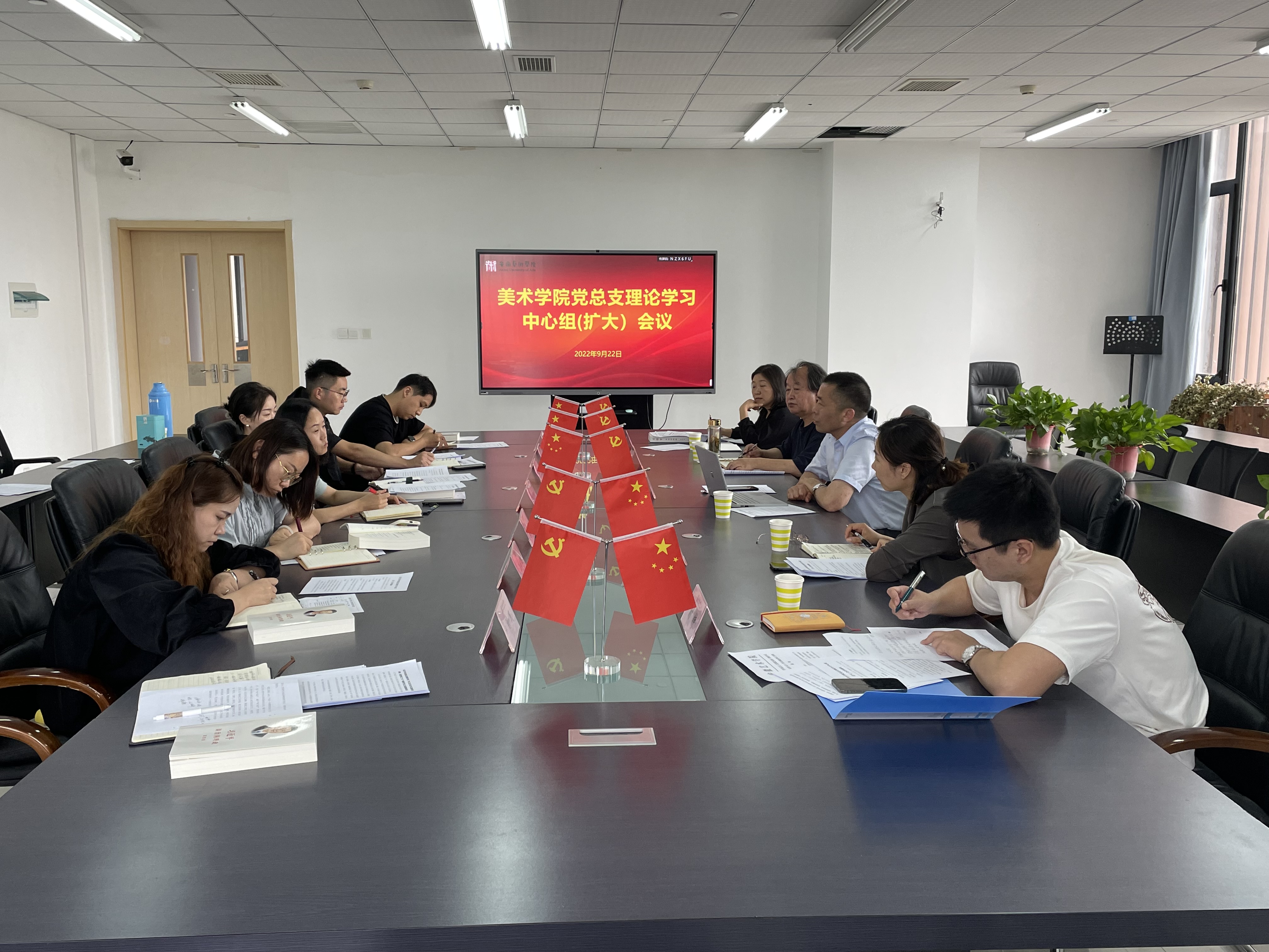 922日下午,美术学院在学院307会议室召开党总支理论学习中心组(扩大)会议,校党委副书记、校长樊嘉禄,人事处副处长兼舞蹈学院党总支副书记徐芳,舞蹈学院时特老师列席旁听,学院党总支成员、党支部书记、教研室主任、团总支书记及组织员等参加本次会议,会议由学院党总支书记罗耀东主持