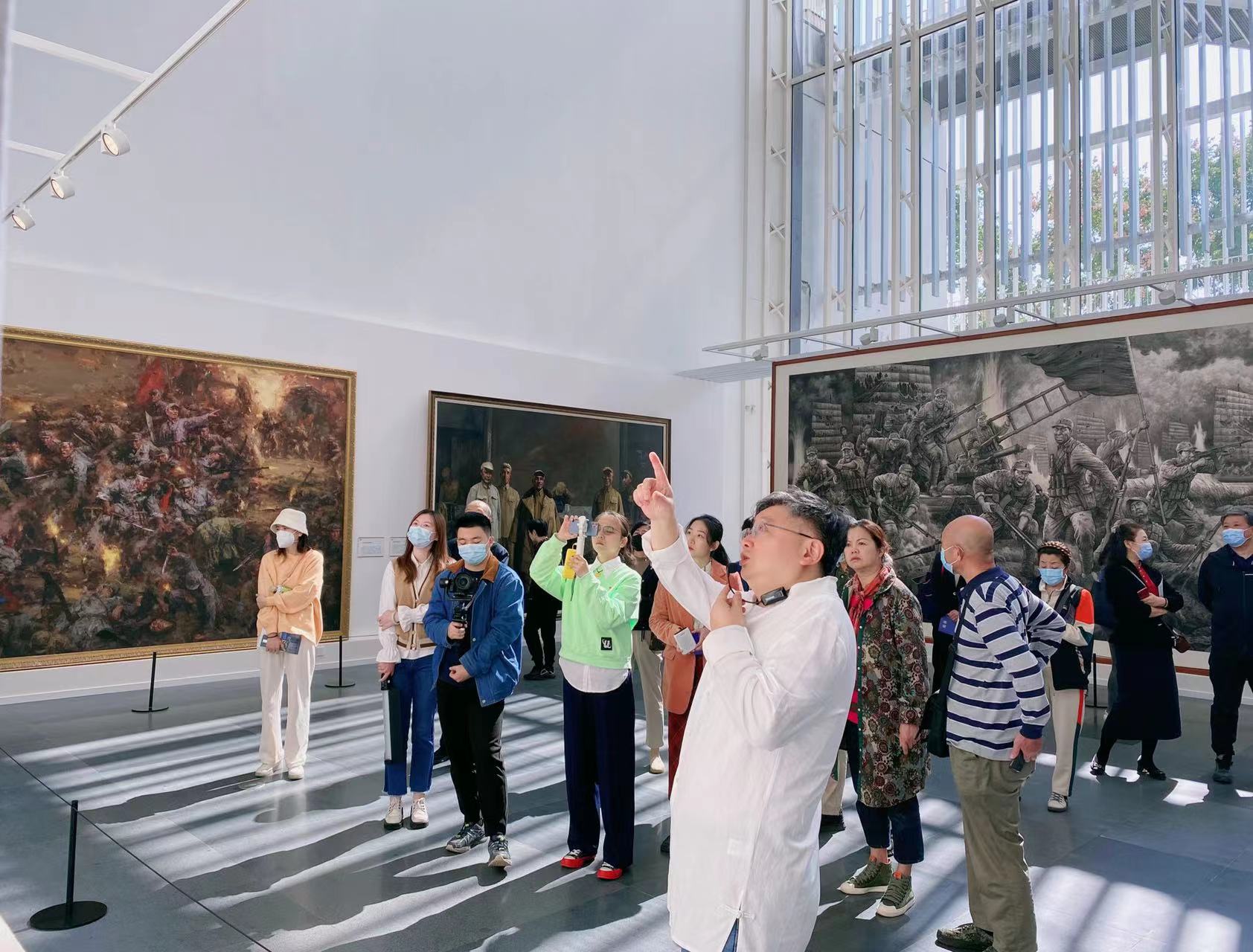 10月12上午,安徽艺术学院美术学院邀请安徽日报社一级美术师、安徽省美术家协会副主席师晶,在省美术馆“安徽省重大历史题材美术创作工程作品”展厅里,以直播的形式为安艺学生展开了一场别样的艺术考察课。