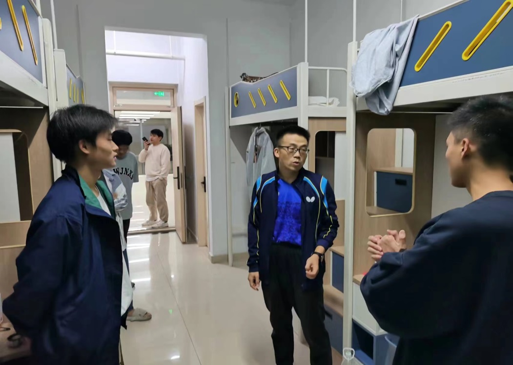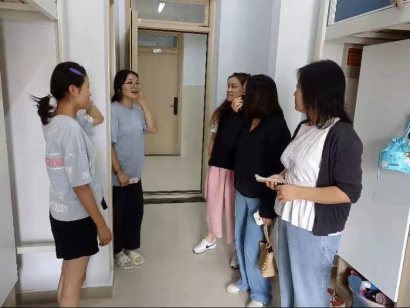 党总支副书记李卫国与辅导员们深入学生宿舍,了解同学们就餐、学习等情况,倾听学生诉求,为他们排忧解难;希望大家营造良好的宿舍卫生环境,保持积极乐观的心态,按时完成每天的健康打卡和核酸检测。