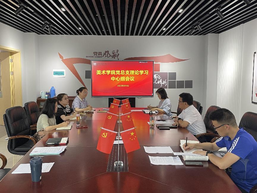6月9日中午,美术学院在314会议室召开党总支理论学习中心组会议暨学习贯彻习近平新时代中国特色社会主义思想主题教育研讨会,党总支书记陈明海主持会议。