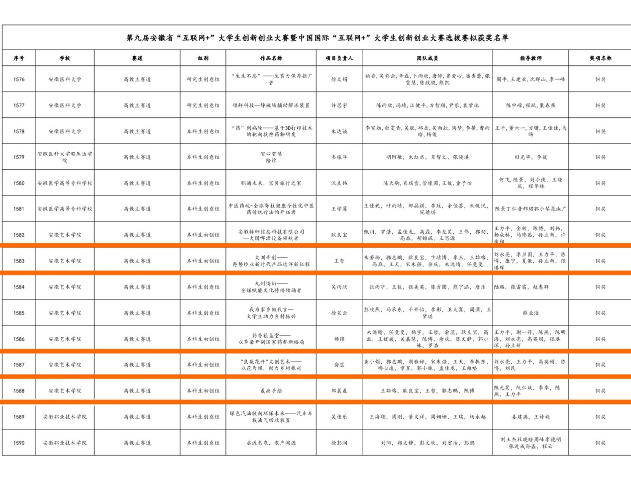 10月23日,安徽省第七届大学生艺术展演活动获奖名单揭晓,美术学院取得佳绩。本次共上报7件作品,5件作品获一等奖,1件作品获二等奖,1件作品获三等奖,获奖率100%,一等奖获奖数量位居全省高校第一,在获奖总数、获奖率和一等奖数量等方面均取得历史性突破。