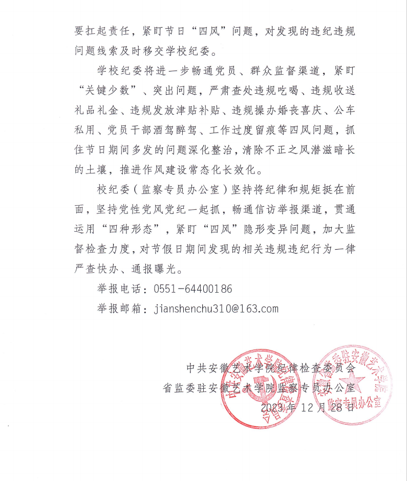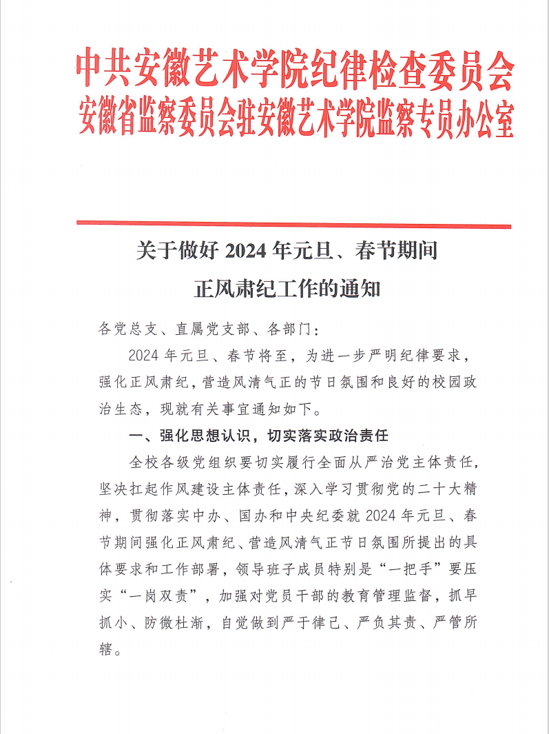 关于做好2024年元旦、春节期间 正风肃纪工作的通知