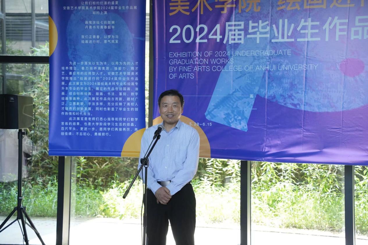 5月28日下午,安徽艺术学院美术学院“绘画进行时”2024届毕业生作品展在美术楼一楼展厅隆重开幕。副校长陈林出席并宣布作品展开幕。