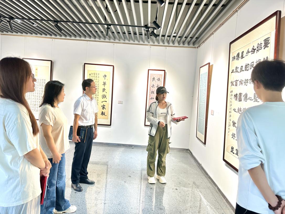 2024年9月30日上午,第二届“民族团结一家亲”书画大赛作品展在美术楼一楼展厅开幕。校党委统战部部长尹广富参加开幕式,美术学院副院长、美术学院党总支统战委员李李主持开幕式。