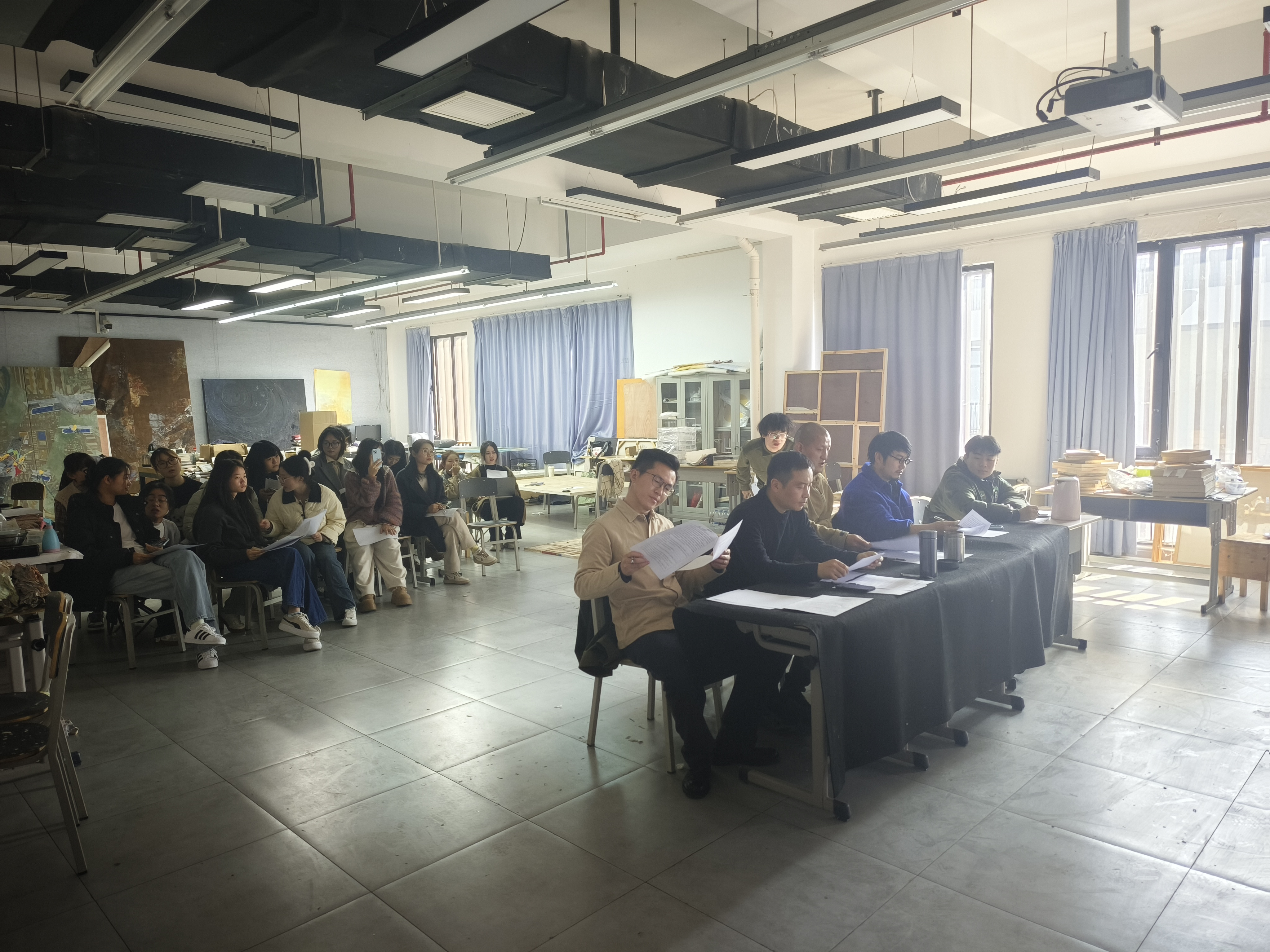 12月2日,绘画教研室进行了2025届本科毕业论文开题报告答辩。为保障学术规范与论文撰写进度,教研室按照专业方向安排了油画和综合材料绘画两个答辩分别进行,每组由四位教师和一位答辩秘书组成,对38位同学进行了全面的评审和指导。