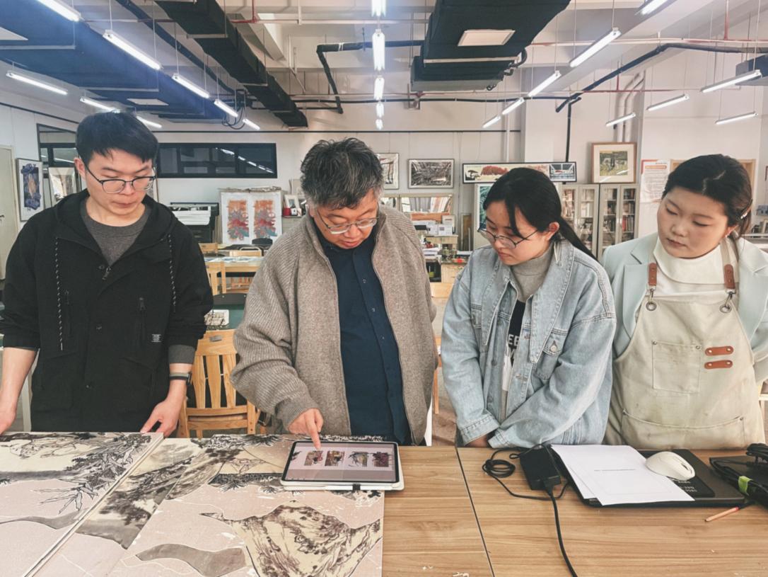 2025年3月11日下午,安徽艺术学院客座教授、中国美术家协会理事、安徽省美术家协会副主席、版画艺委会主任师晶,莅临美术学院版画工作室指导工作。师晶教授细致点评了每位毕业生的版画作品,从构图形式到主题内容都给予了专业指导。面对2024级版画方向的新生,师晶殷切寄语,勉励同学们勇担新时代艺术使命,积极投身创作实践,为新徽派版画艺术的传承与创新贡献青春力量。师晶平易近人的态度与高屋建瓴的指导,令在场学子如沐春风,备受鼓舞。