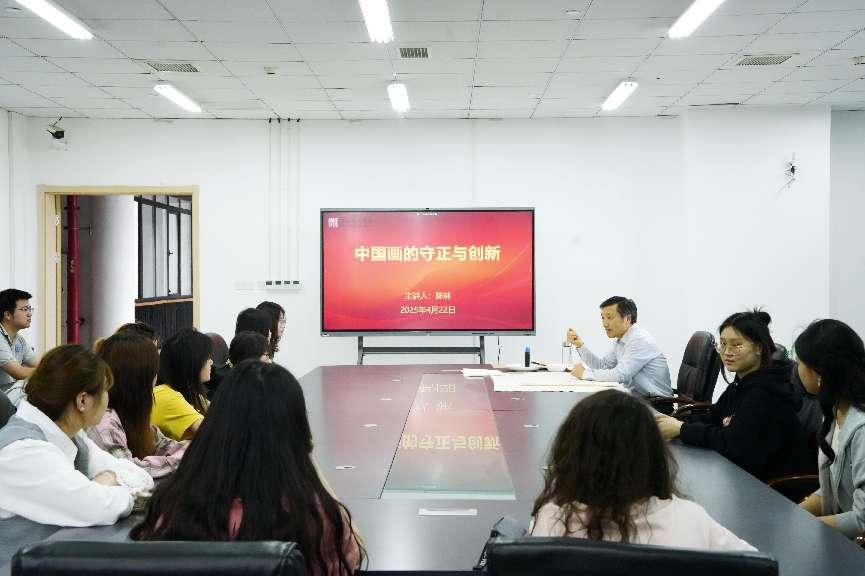 4月23日下午,校党委委员、副校长陈林以“中国画的守正与创新”为主题,在美术楼307会议室给美术学院2023级中国画1班学生上思政课。