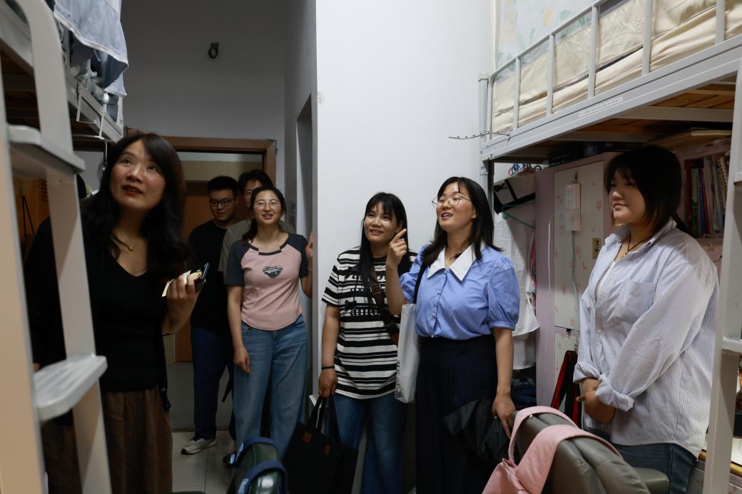 5月14日,家长代表与辅导员一同深入学生宿舍,查看学生宿舍环境,了解学生宿舍生活。家长与孩子亲切交流日常生活情况,了解作息安排、室友相处模式等细节。
