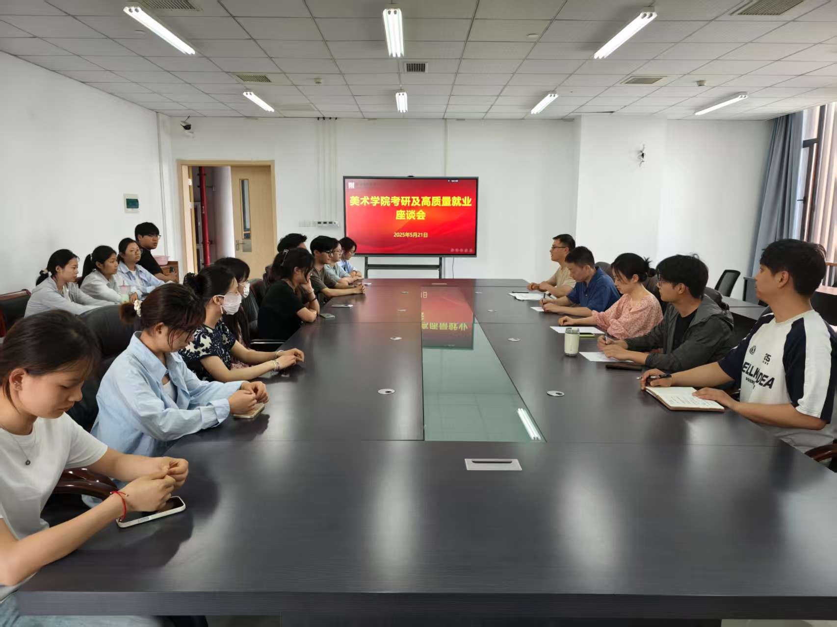 为进一步了解考研学生实际需求,做好针对性指导帮扶,521日下午,美术学院在美术楼307会议室召开考研暨高质量就业座谈会。美术学院专业教师罗守俊、张永良、曹洋、毕业班辅导员及考研学生代表参会。
