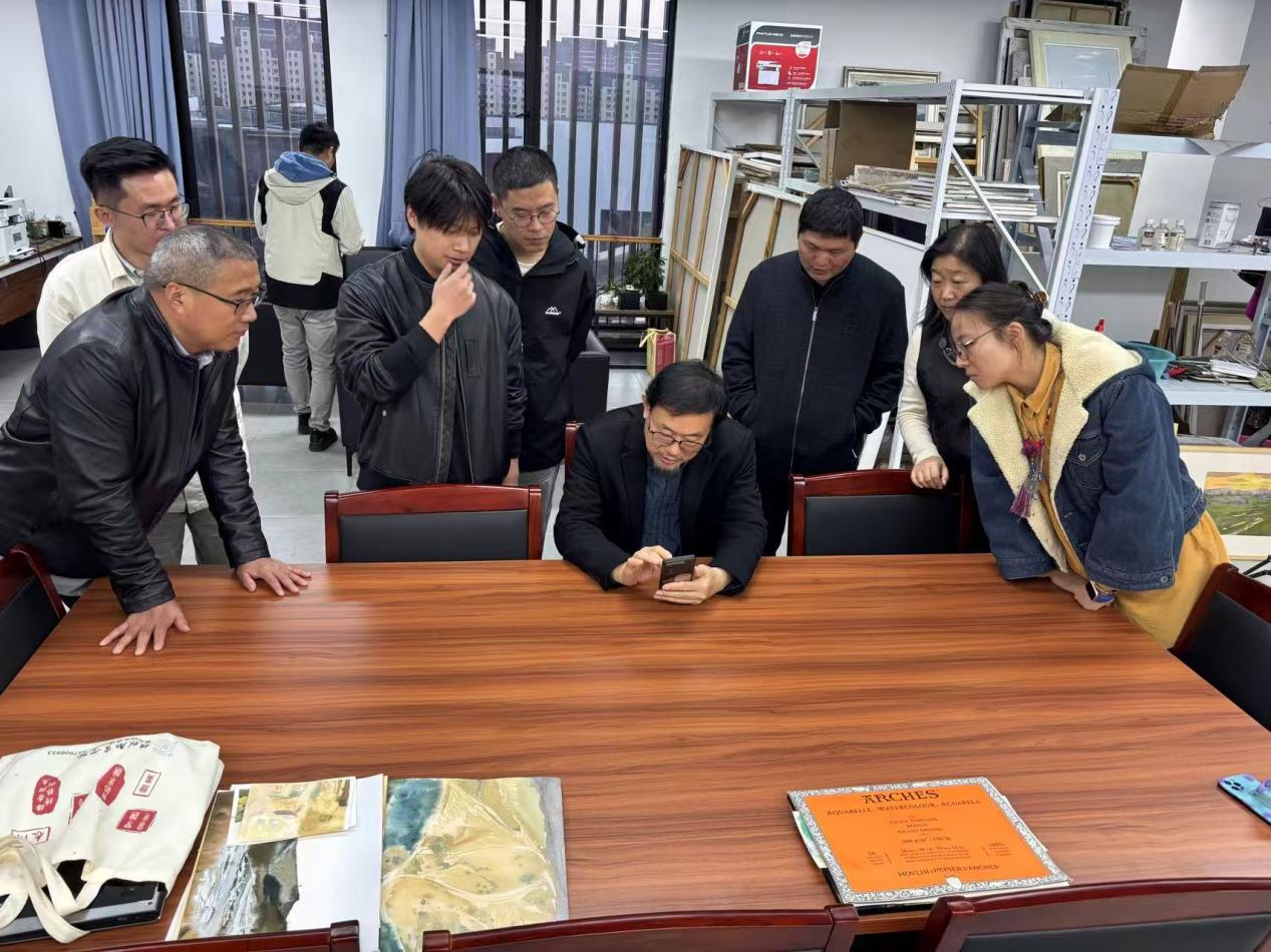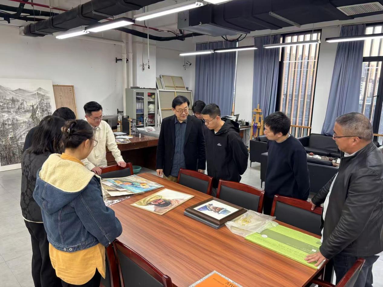 近日,我校特聘教授丁寺钟专程到美术学院,指导绘画教研室教师水彩画创作。丁寺钟逐一查看了老师们近期创作的水彩画作品,并分别提出了指导意见和建议。丁寺钟指出,水彩画创作需要投入大量的时间和精力,国外绘画大师水彩画都画得较好,老师们要多欣赏名家作品,多写生。水彩画创作要构思完整,画面要讲究形式感。