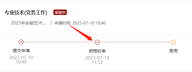 我校2023年公开招聘工作人员(二)初审结果已开通查询,请报名考生登录“安徽艺术学院2023年度公开招聘报名系统”进行查询。如下图即为初审通过: