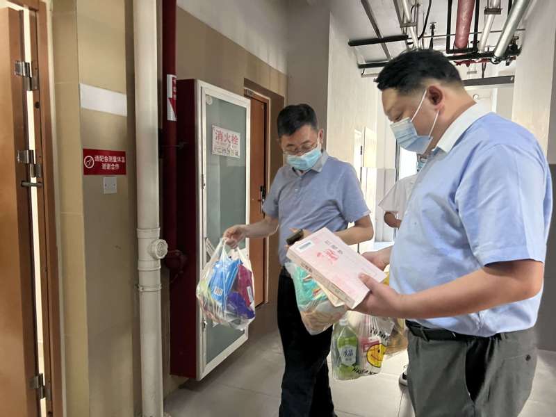 9月27日下午,设计学院教工支部、学生支部与机关党总支委员会委员王立仁共同看望设计学院被隔离新生,为新生准备文学书籍和生活用品,嘱咐新生注意防疫,令新生感受到组织的关怀。 (撰稿:何亦邨 摄影:何亦邨 初审:王亚鹏 复审:夏守军 终审:陈明)