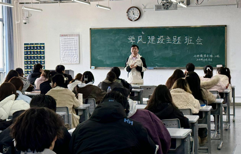 为营造积极向上的学习氛围,引导同学们树立求是创新的专业态度,增强班级凝聚力,3月18日中午,设计学院2023级环境设计专业在综合楼304教室召开了以“夯实专业基础,共筑优良学风”为主题的学风建设主题班会。辅导员黄威老师和全体同学共同参与,班会通过经验分享、问题剖析、互动提议等形式,为班级的学风建设注入新动力。班会伊始,黄威从学风建设与全面发展的关系切入,强调学风是学生综合素质的体现,也是高校人才培养的核心,同时强调建成良好的学风必须依靠每一位同学的努力。黄威详细分析了今年的今年省考情况并动员班级同学认真备考四六级,通过案例分析,指出优良学风能够激发学习动力、提升教学效果,同时呼吁学生在规划学业与职业发展中做到“仰望星空、脚踏实地”。1班班长惠子和2班班长余俊锋就班级同学的公共任选课和专业任选课学分进修情况进行汇报并提出整改方法。1班学习委员张静和2班学习委员於克祥带领同学们重新学习了《学生手册》,着重就班级日常考勤制度管理和课程作业进行了指导,并提醒班级同学遵守纪律,及时认真完成课程作业,共同维护良好的学风和班级积极向上氛围。随后,黄老师和同学们围绕近期重要考试的考情、设计类专业发展和