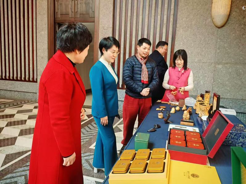 2月18日,由安徽省人民政府外事办主办的“美好安徽 迎客天下——安徽省与外国驻沪机构贺新春话合作联谊活动”在上海举行。来自安徽省政府及相关厅局的领导,16个市政府的负责同志,安徽省新兴产业协会和开发区、企业负责人,以及外国驻沪领事机构、商协会和友城代表等230余人齐聚一堂,共谋未来。中国工艺美术大师我院特聘教师、洪建华受邀参加活动。活动现场,洪建华向嘉宾介绍徽州竹雕工艺品,解读其历史渊源及艺术价值,展示徽州竹雕技艺,讲解制作工艺,吸引与会嘉宾纷纷在非遗展区驻足,了解安徽宝贵的非物质文化遗产资源,领略非遗魅力与传统徽文化的博大精深。本次活动的举办能够进一步展示安徽优秀非遗文化,宣介中国式现代化美好安徽建设最新成果。撰稿:薛莲 摄影:余松阳等 编辑:王亚鹏 复审:王从启 审定:俞璋凌