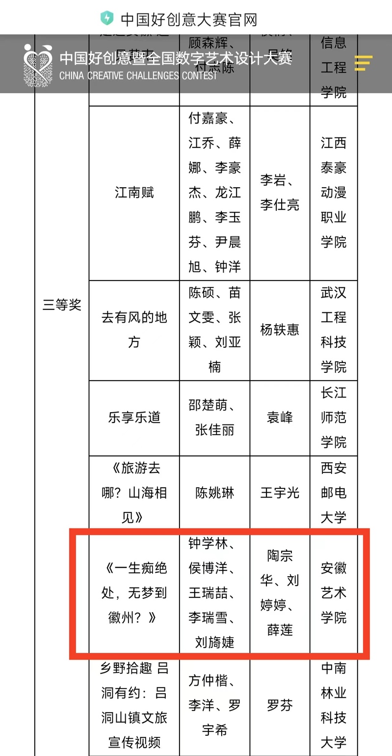 4月21日第18届中国好创意大赛乡村旅游设计专项大赛圆满落幕。本次大赛共收到全国1974所高校投稿的12133件作品,其中有效作品11426件,共150件作品分别荣获一、二、三等奖,获奖比例1.3%。经过激烈的评选,我校陶宗华,刘婷婷,薛莲三位老师指导的23级数字媒体...