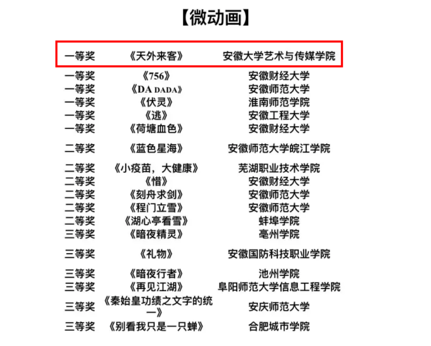 近日,由安徽省教育厅主办的安徽省大学生微电影大赛决赛在安徽财经大学落下帷幕,我院数字媒体艺术教研室选送的3件参赛作品在此次大赛中获奖。其中:一等奖2项,分别是:2018级数字媒体艺术刘彤彤创作的微纪录片《匠心·凤鸣寿州窑》(指导教师:李倩)、2018...